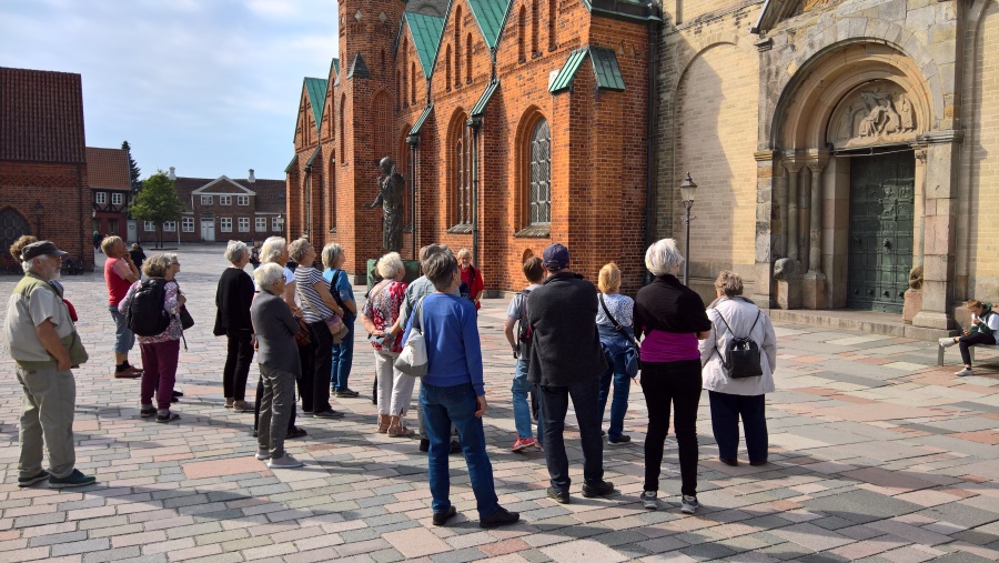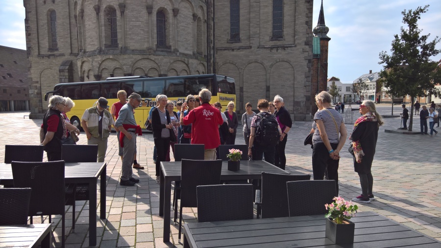 Samtidigt er foredraget oplæg til tirsdagens heldagsudflugt til Ribe, hvor vi både skal se flot samling af vikingetidsgenstande og besøge Ribe, som byen så ud omkring 825, med huse, byggepladser, mennesker og dyr. Vi runder dagen af med en rundvisning i nutidens Ribe, inden vi sætter os i bussen mod Brandbjerg.