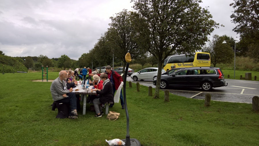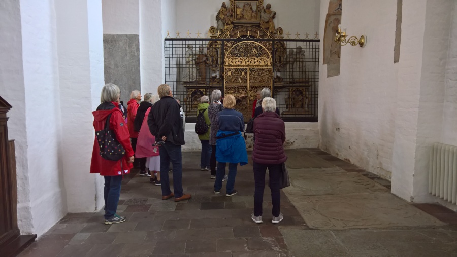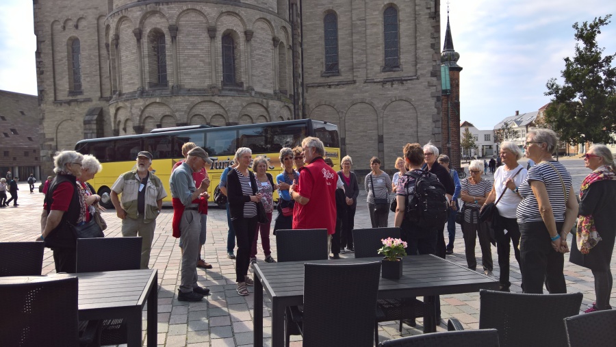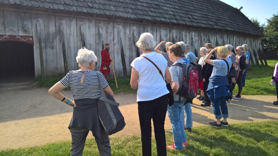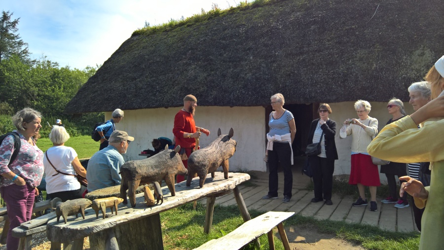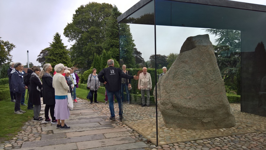 Onsdag er også udflugtsdag. Først med Besøg i Harald Blåtands Jelling, senere med besøg i hans befæstede by Aros - bedre kendt som Århus.